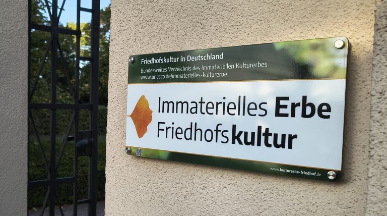 Der Neue Friedhof Mittweida steht seit September im Zeichen des immateriellen Kulturerbes Friedhofskultur. Ein Schild am Haupteingang des Neuen Friedhofs in der Chemnitzer Str. 45a macht so auf die wichtige Bedeutung der Friedhofskultur aufmerksam. Friedhofskultur meint all das, was Menschen auf dem Friedhof tun. Dazu gehört das Trauern, Erinnern und Würdigen genauso wie das Gestalten, Pflegen und Weiterentwickeln.
